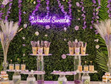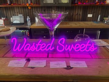 Full setup and breakdown included, along with plates, forks, napkins, a curated display, and a Wasted Sweets sign OR acrylic bar sign.